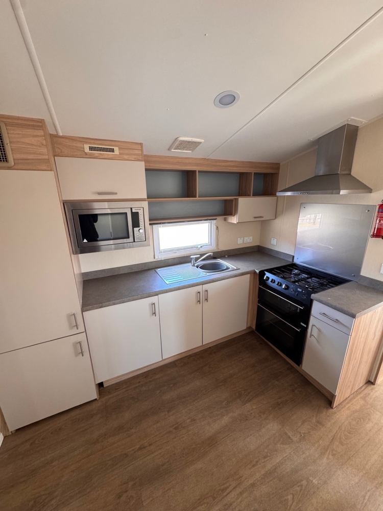 the 2019 willerby linwood is a modern, spacious and family-friendly holiday home designed to offer comfort, practicality and excellent value.with its smart layout and contemporary stylling, the 4-bedroom model is perfect for larger families or those who love to host guest. The linwood offers a bright and airey open-plan lounge with large windows to maximise natural light. comfortable L-shaped seating provides plenty of room for everyone, while a pull-out sofa bed adds extra sleeping space for guests. the layout creates a sciable environment, ideal for relaxing or entertaining.